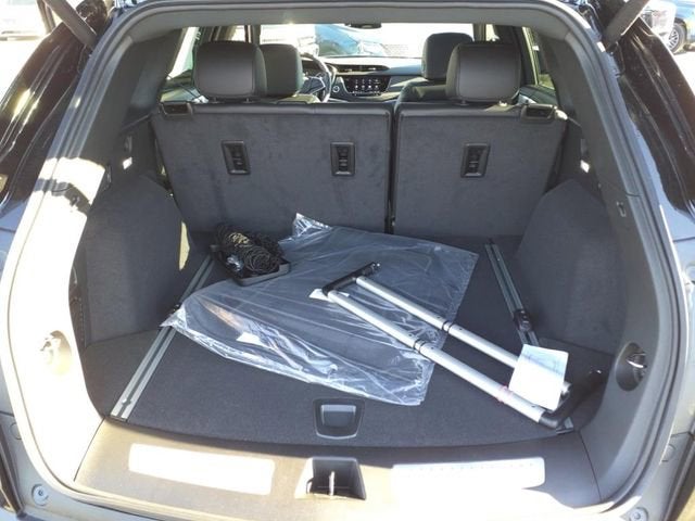 - Opens or closes when the system senses the key fob and the driver extends their foot under the left-hand side of the rear bumper over an image of the Cadillac Crest projected under the vehicle