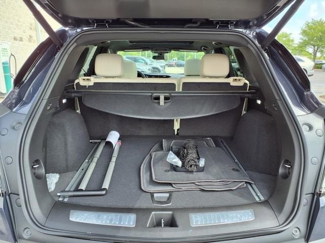 - Opens or closes when the system senses the key fob and the driver extends their foot under the left-hand side of the rear bumper over an image of the Cadillac Crest projected under the vehicle